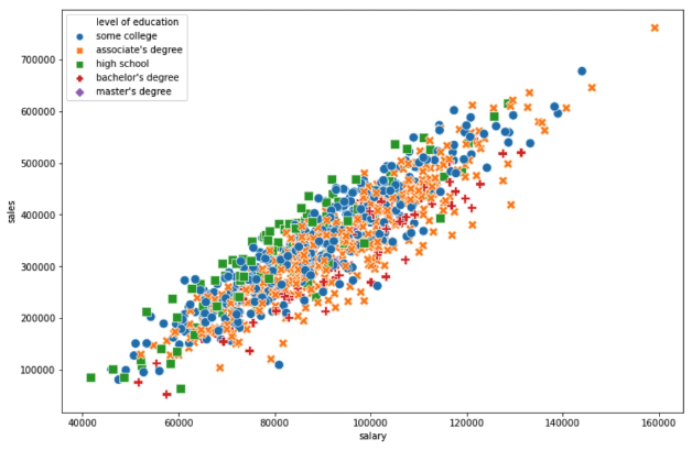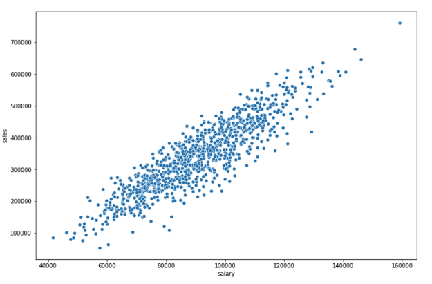 Si les points montent globalement vers la droite, cela suggère une relation positive : plus les ventes sont élevées, plus le salaire tend à augmenter.
